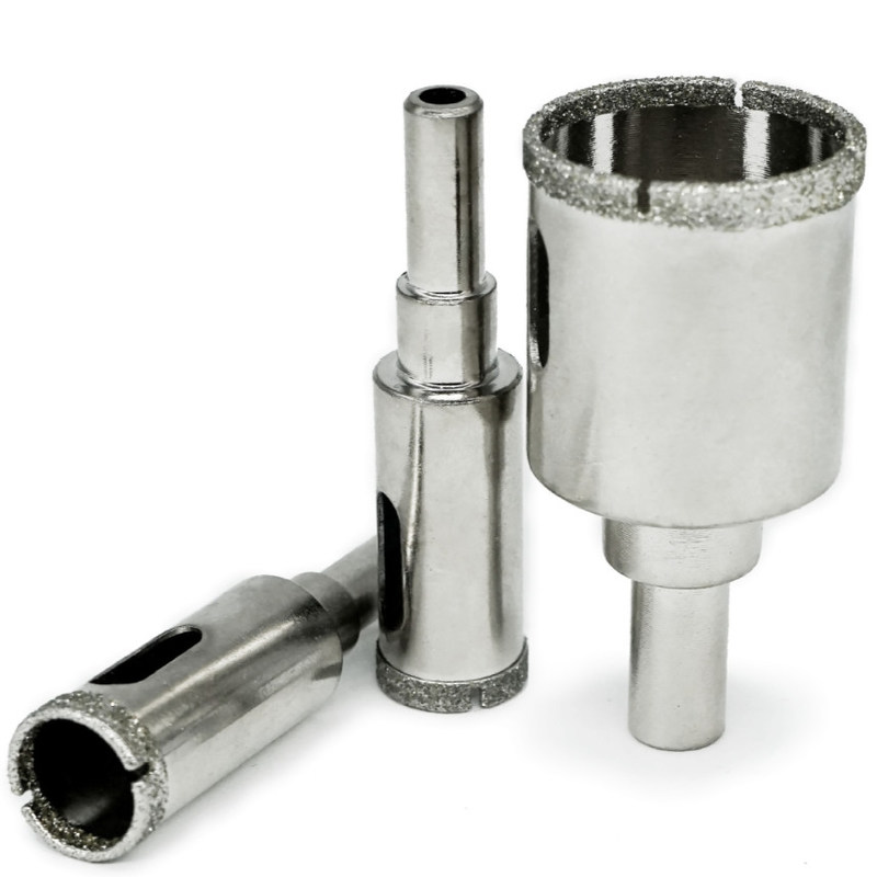 Máy mở lỗ thủy tinh được làm từ các hạt kim cương đa góc và được điện áp.Diamond có đường kính từ 3mm đến 2oomm. Kim cương có kích thước nhất định được mạ trên một thân thép đặc biệt bằng quy trình điện mạ. Nó được sử dụng để khoan lỗ trong thủy tinh, gốm, ngọc bích, vv.
